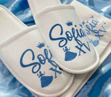 Make your celebration both comfortable and stylish with custom slippers, perfect for weddings, quinceañeras, bachelorette parties, and all kinds of events. A practical and unique keepsake your guests will love.