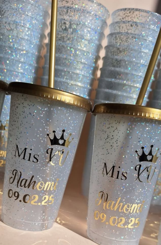 ✨ Custom Glitter Cups – The Perfect Shiny Touch for Your Event 🥂 Add sparkle to your special day with these custom glitter cups! Ideal for weddings, quinceañeras, bridal showers, birthdays, or any celebration that deserves a glamorous detail. 🎉 Benefits: 🌟 Personalized with name, date, or custom message 🍸 Shine beautifully in photos and party setups 🎁 A unique keepsake for your guests 📋 Features: • Available in pink, gold, silver glitter and more • Durable, reusable plastic material • Long-lasting design for toasts and memories • Standard capacity (custom sizes available)