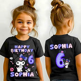 👕 Custom Kuromi Birthday Shirt – Perfect for Parties 🎉 Celebrate your special day with a custom Kuromi birthday shirt, featuring the adorably edgy Sanrio character. Perfect for birthdays, themed gatherings, or as a unique keepsake. Personalize it with your name, age, date, or a special phrase. ✨ Benefits: 🌟 Cute, eye-catching design inspired by Kuromi 🎈 Great for themed parties or Sanrio fans 🎁 A comfortable, wearable keepsake for after the party 📋 Features: • Soft, comfortable fabric (cotton or polyester) • High-quality, durable DTF printing • Customizable with name, age, or message • Available in kids’ and adults’ sizes