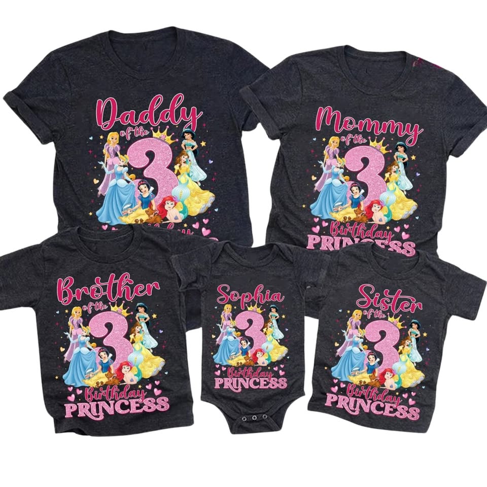 πŸ‡ΊπŸ‡Έ Custom Princess T-Shirts – Magical Kids Party Wear ✨ Turn any birthday into a fairytale with our custom princess t-shirts! Perfect for kids' parties, these shirts make the birthday girl and her guests feel like royalty. 🌟 Benefits: βœ… Personalized with name, age, and favorite character πŸ‘Έ Colorful and adorable designs girls love 🧡 Soft and comfy fabric for children 🎁 Great as party favors or the perfect birthday outfit 🚚 Fast shipping and personalized attention πŸŽ‰ Make her birthday as magical as she imagined!