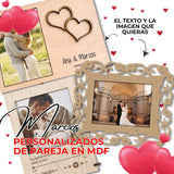 Guarda tus mejores recuerdos en un marco personalizado de MDF, diseñado especialmente para parejas. Perfecto como regalo en San Valentín, aniversarios, bodas o cualquier ocasión especial, es un detalle único que combina elegancia y sentimentalismo.